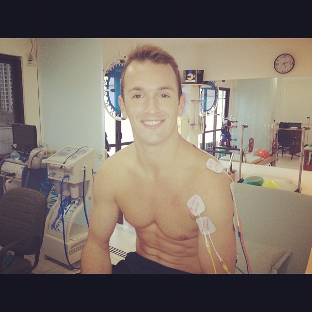 Sob overdose de fisioterapia, Diego Hypólito faz 3 sessões de fisioterapia por dia.
